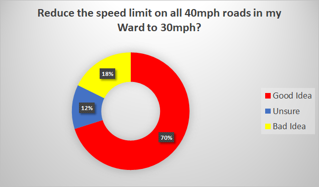 This question also asked if there was support for immediately reducing the speed limit on all 40mph roads in my Ward to 30mph – the response was clear.