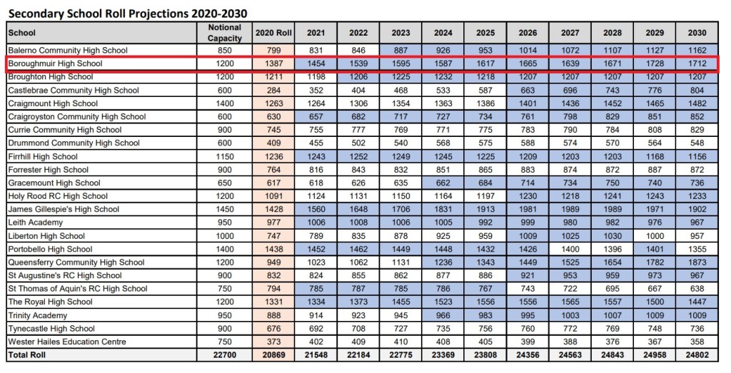 - Boroughmuir’s capacity issues should not be news, I blogged about it here in 2019 and touched on it in 2021 is part of my review of City Plan 2030.