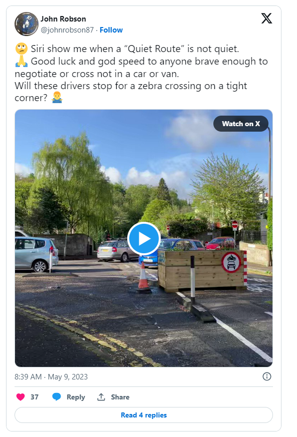 The “Quiet Route” between Greenbank and Cluny Gardens is a legacy Spaces for People project which is more controversial than it should be due to problematic consultations in the past, and the flawed way in which the opposition parties reopened Braid Road. At that point I requested that the reopening ‘should include consideration of a more clearly defined cycle route between Greenbank Crossroads and the Meadows, and how this interfaces with Comiston Road’, but this was blocked by the Edinburgh Greens. You can see the current situation here and I cycle the whole route here.