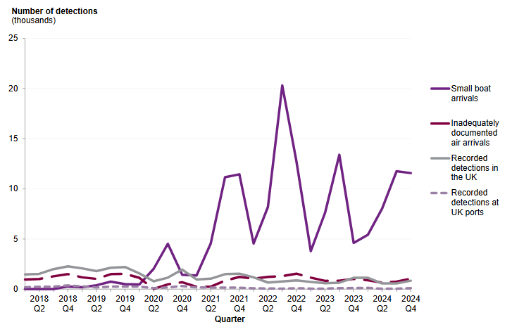 Brexit is also key to understanding irregular migration. There’s a worrying amount of misinformation surrounding irregular migration into the UK. While irregular migration remains high, it’s important to keep perspective. Irregular arrivals (around 44,000 in 2024) accounts for less than 5% of total immigration. At the heart of this issue often are vulnerable people who are being exploited by criminal gangs – something the Government is committed to stopping.